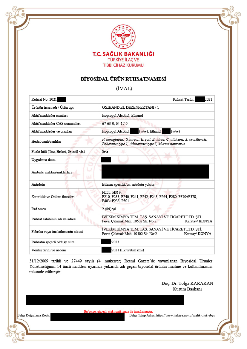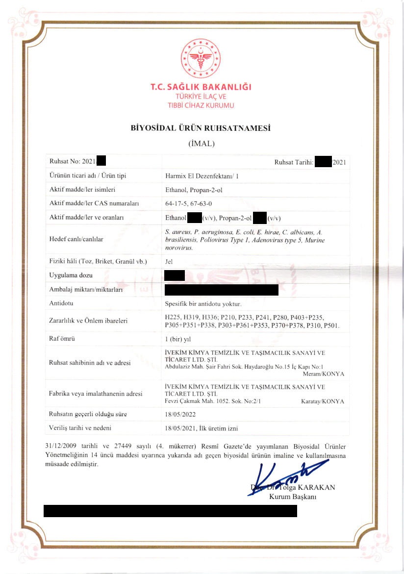 Dezenfektan üretimi için gerekli Sağlık Bakanlığı Biyosidal ürün üretim ruhsatı